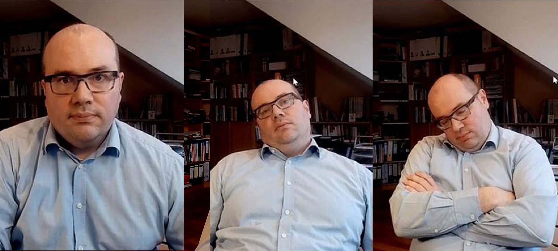 Auch die Sitzposition spielt in Videokonferenzen eine Rolle. Wie wirkt es, wenn ich aufrecht sitze oder mich in den Stuhl lümmele? Man sollte sich der Wirkung seiner Körperhaltung genau bewusst sein. Wenn es respektlos wird, ist die Grenze des Tolerierbaren überschritten.