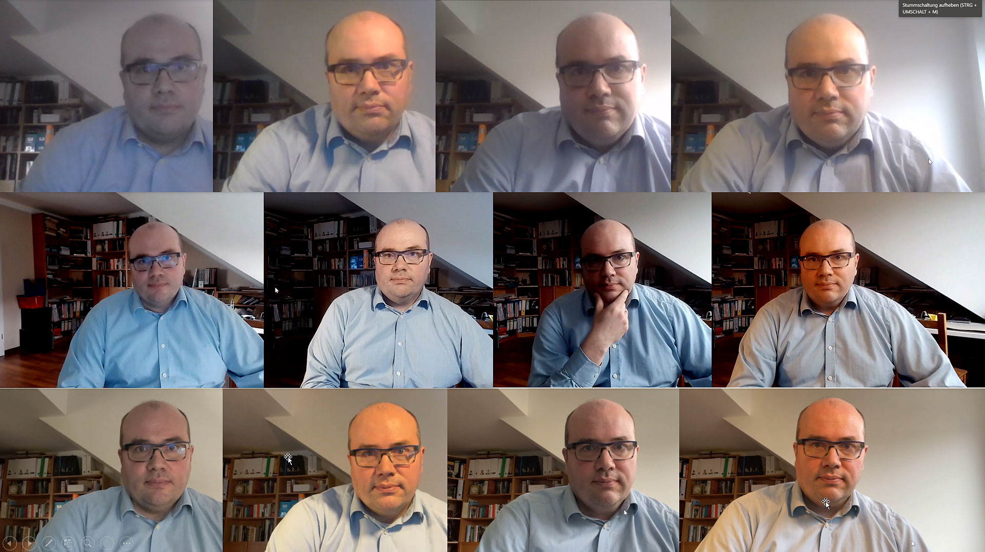 Diese Parameter habe ich miteinander kombiniert. Um die Verbesserungen beurteilen zu können, habe ich einen Videoanruf auf einen anderen PC geschaltet und von dem zweiten PC Screenshots aufgenommen. Denn ich gehe davon aus, dass das Bild, welches an den Gesprächsteilnehmer übermittelt wird, ein anderes ist, als ich selbst sehe. Neben der Kamera habe ich noch einige Hintergrundeffekte und einen Greenscreen ausprobiert. Ebenso habe ich die Wirkung verschiedener Kamerapositionen und die Körperhaltung überprüft. Bei allen Tests wurde die Software MS Teams eingesetzt. Hier nun meine Erfahrungen.