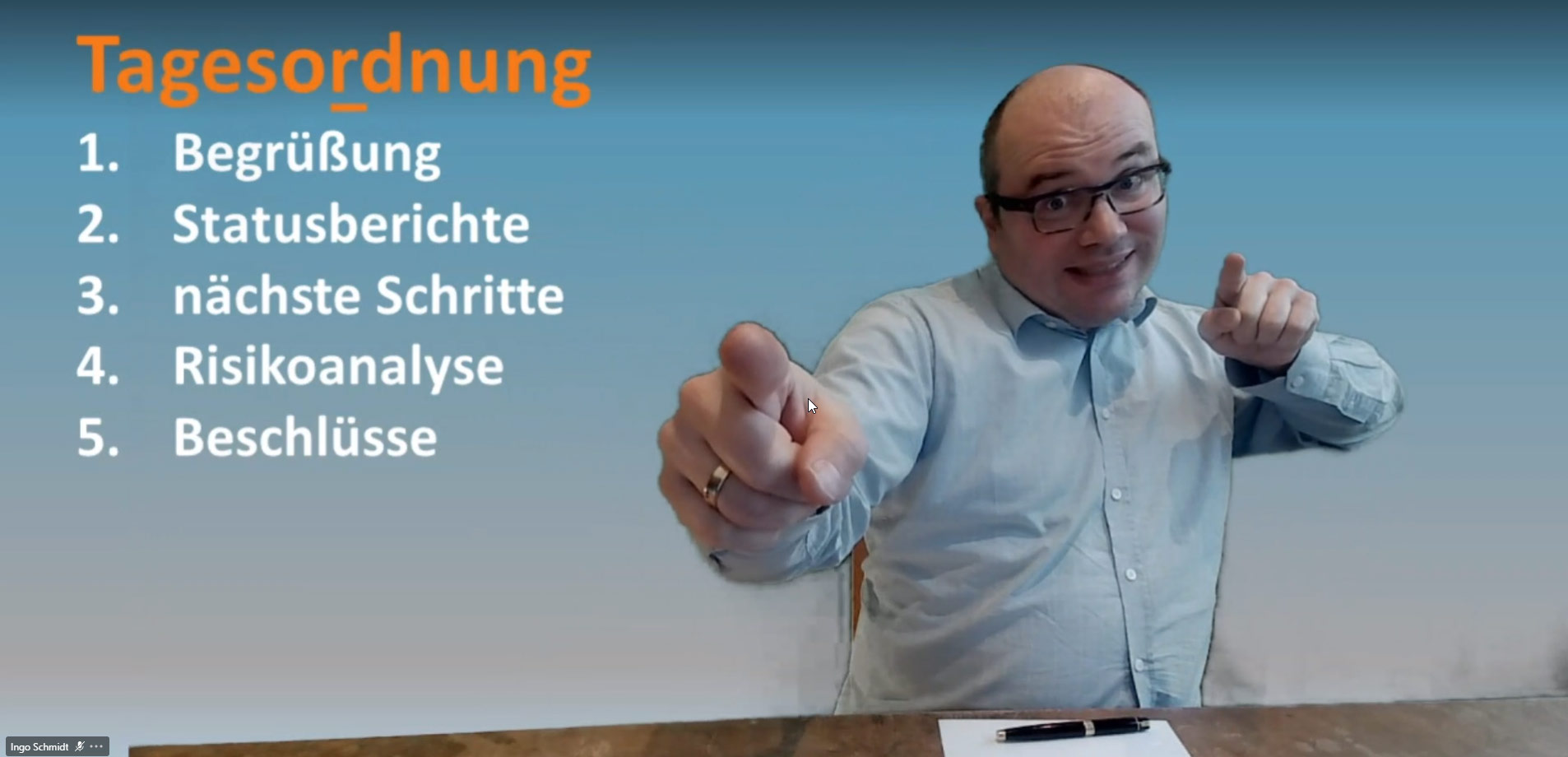 Etwas anderes kann der Greenscreen auch noch viel besser als die Effekte von MS Teams: er ist 3-dimensional. Ihr kennt das: bei Teams verschwinden Körperteile, wenn man nicht genau den Abstand zur Kamera einhält. Das ist beim Greenscreen nicht der Fall.