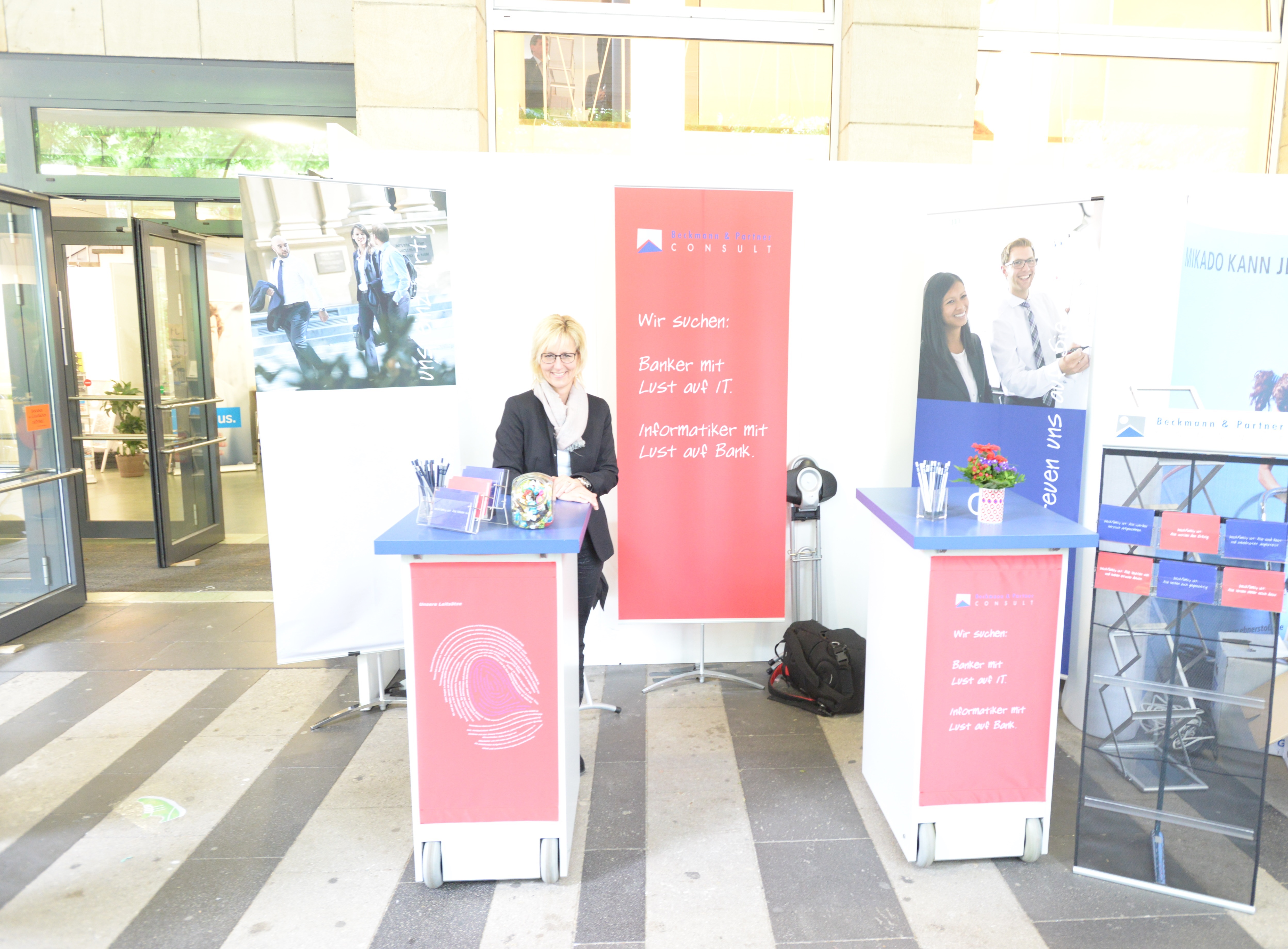 Was macht Beckmann & Partner CONSULT als Arbeitgeber besonders? Welche Leistungen kann ich als Arbeitnehmer erwarten, welche Qualifikationen muss ich mitbringen? Was sind meine Einstiegs- und Entwicklungsmöglichkeiten? Auf diese und alle anderen Fragen haben wir - in Person von Birgit Schweneker und Hermann Vogel - am 20. Mai 2016 auf der Karrieremesse Business Contacts Rede und Antwort gestanden.