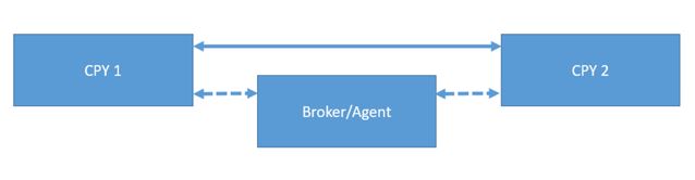 Ein bilaterales Geschäft kann mit oder ohne Vermittler/Agent/Broker zustande kommen. Wenn der Intermediär dabei eine aktive Rolle eingenommen hat, muss er mit seiner LEI im Report genannt werden.
