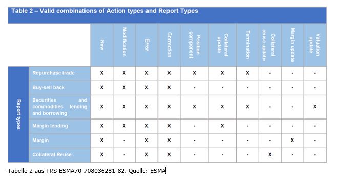 In der eingangs erwähnten Liste fehlen SFTs (Securities Financing Transactions), nämlich Total Return Swaps, Wertpapierleihe und Repo Geschäfte sowie die nicht unter EMIR fallenden Liquidity Swaps und Collateral sowie Margin Swaps. Für diese wird jetzt unter SFRT auch das Transaction Reporting geregelt.