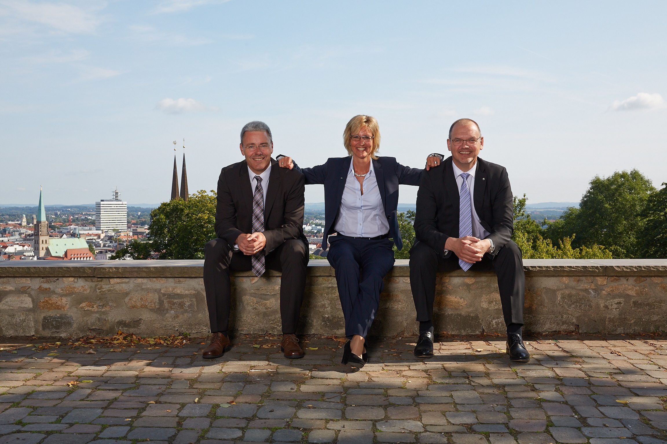 Die Geschäftsleitung von Beckmann & Partner CONSULT: Matthias Wieking, Birgit Schweneker, Hermann Vogel (von links nach rechts)